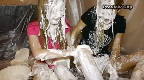 ギャル2人でパイ投げをしまくり髪の毛も体もぐちゃぐちゃ DUGA DUGA 2014.11.06ギャル2人の出演でトランプで勝負をし数字の大きい方が勝ちで負けた方が何度もパイ投げされます2人とも髪の毛も体もぐちゃぐちゃになって体中の生クリームをお互いに塗りまくったり生クリームいっぱいの洗面器に顔押し付けられたりと全身ドロドロですその他のパイ投げ動画はこちら