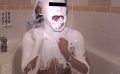 ずぶ濡れになる衣服、ストッキングを滴る雫、水浸しになる革靴、ブラウスから透ける下着…。女性は着衣のままいつものようにメイクを落して洗顔し、頭を洗って湯船に浸かる。