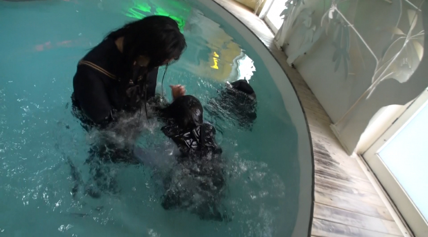 お姉ちゃんは雪遊びで冷えただけかもしれないけど、池に落ちたらどんな感じか教えてあげる。姉にプールサイドに座ってもらい、目をつぶらせ、ほんとにビックリするから!と言いつないでいた手を離し足を触ったあと手を引っ張ると落ちる姉。死ぬかと思った~と抱き合う。